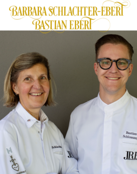 Seit 2022 teilt Barbara Schlachter-Ebert die Küche mit Ihrem Sohn Bastian, der nach seinen Lehr- und Wanderjahren nach Hause zurückgekehrt ist und mit 27 Jahren die kreative Leitung der Schlossanger Küche übernommen hat. Sein Motto ist ganz einfach: Er kocht nur, auf was er auch selbst Lust hat.